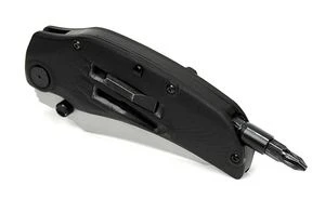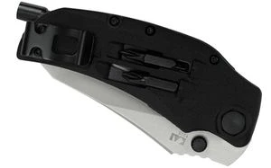 Kershaw 1925 Payload Multifunktionsmesser Das Kershaw Payload Messer beinhaltet neben der einhändig bedienbaren Klingen einen Bit-Halter und 5 Bits: 2x Schlitz-Schraubendreher, 2x Kreuz-Schraubendreher und 1x Torx T-6. Der Bithalter ist im Griff versenkt und wird auf Knopfdruck mittels Federkraft aus dem Griff ausgefahren. Die Klinge besteht aus rostfreiem 8Cr13MoV Stahl hergestellt. Die geöffnete Klinge wird durch einen Liner-Lock gesichert. Die Ausstattung komplettiert ein abnehmbarer Clip. Technische Daten: Klingenlänge 8,4 cmHeftlänge: 10,8 cmGesamtlänge: 19,1 cmGewicht 179 Gramm
