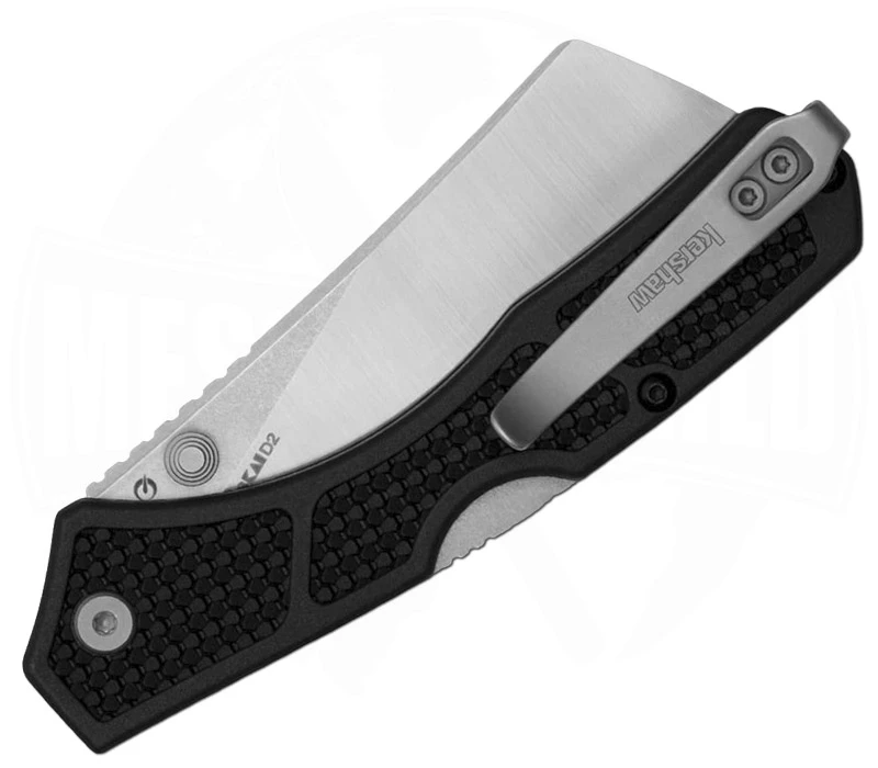 Was genau wird uns hier geboten? Ein widerstandsfähiger Griff aus GRN (glasfaserverstärktem Nylon) begleitet die 8 cm lange modifizierte Cleaver Klinge aus dem bekannten D2 Stahl. Der Griff liegt bequem und rutschfest in der Hand dank der Strukturen am GRN-Griff. Das Öffnen der Klinge erfolgt einfach über einen Daumenpin. Für die Sicherheit sorgt ein bewährter Backlock, der die Klinge sicher in Position hält. Und nicht zu vergessen, der umsetzbare Pocketclip, damit sowohl Rechts- wie auch Linkshänder Freude daran haben.