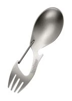 Ration, Löffel/Gabel-Kombiwerkzeug von KershawWenn Du gerne campst, wanderst, mit dem Rucksack unterwegs bist oder auf die Jagd gehst, weißt Du, dass Du dieses Werkzeug brauchst.Wenn Du eine kurze Mittagspause zwischen zwei Unterrichtsstunden hast, weißt Du, dass Du dieses Werkzeug brauchst. Wenn Du nur Zeitfür ein schnelles Mittagessen am Schreibtisch hast, weißt Du, dass Du dieses Werkzeug brauchst.Gewiss ist das Ration Kombi-Essbesteck von Kershaw sehr kompakt, aber dieses Werkzeug bietet einen großzügig dimensioniertenLöffel – für einen ordentlichen Mundvoll Suppe oder Chili – sowie einen Gabel mit Zinken, die lang genug sind, um ihrem Sinn undZweck gerecht zu werden.Als zusätzlicher, praktischer Bonus verfügt dieses Kombibesteck über einen integrierten Karabinerhaken. Damit kann es mühelos am Rucksack, amAktenkoffer oder an der Handtasche befestigt werden und wird so jederzeit griffbereit bleiben.Technische DatenMaterial: rostfreier Stahl 3Cr13MoV, glasperlengestrahltGesamtlänge: ca. 11,7 cmGewicht: ca. 31 GrammFunktionen: Gabel, Löffel, Flaschenöffner und Schnapp-KarabinerHersteller-Artikelnummer: 1140X
